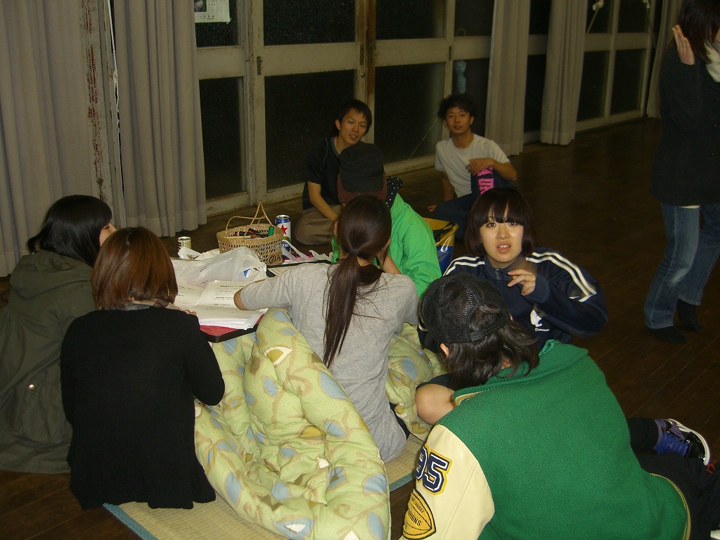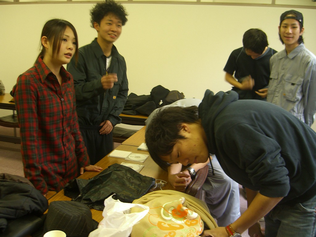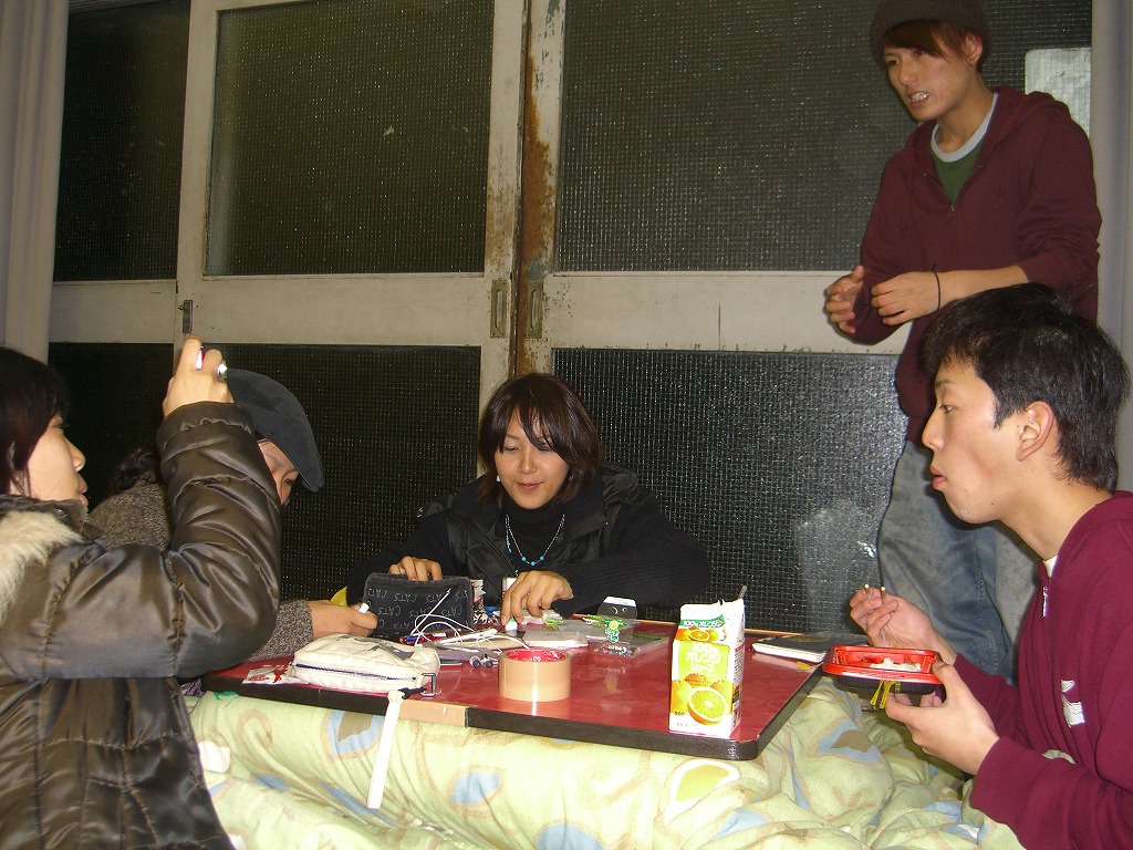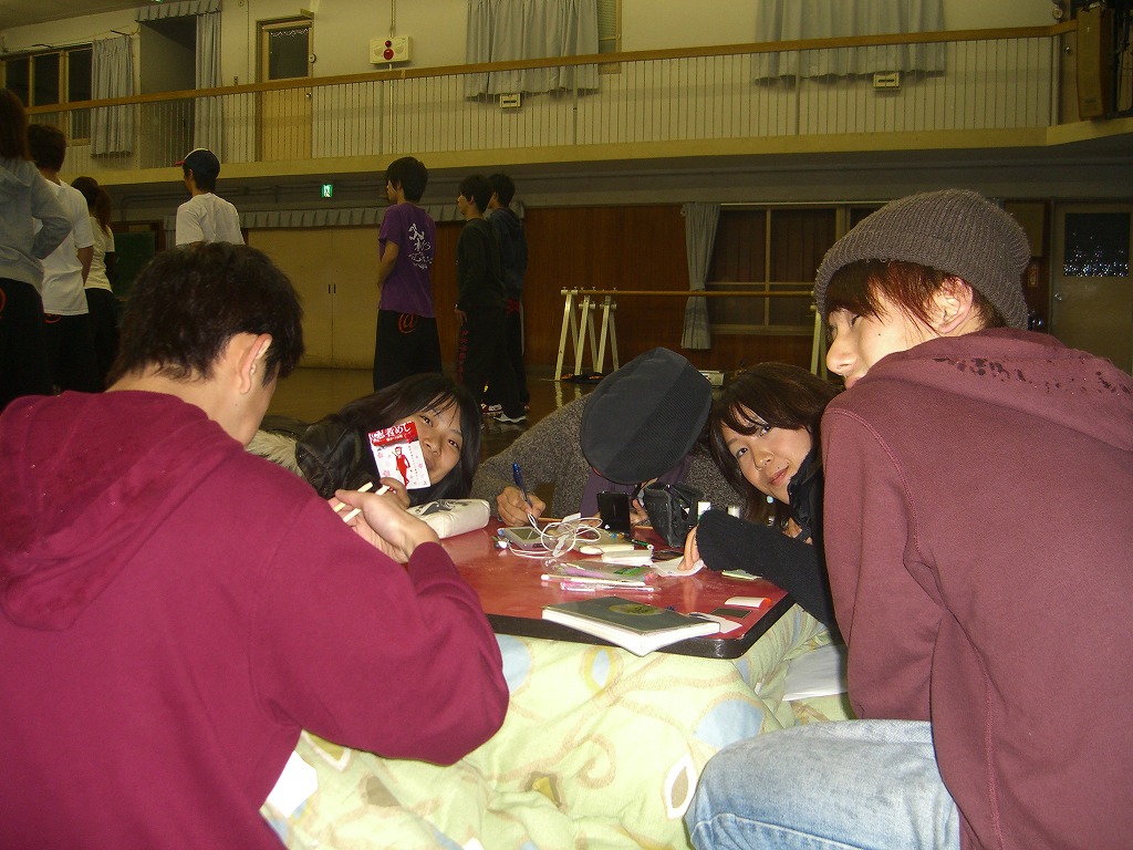お疲れ様です。HP係です。 毎週土日にイベントがあるので、その模様を早速お送りしたいのですけれども、 季節はもはや「こたつ@舞踊場」となっていまして、 そちらをお見せしたい次第であります。 ということで、キャラクター祭りのほうは次回に回します☆ ではでは見てみましょう! 舞踊場日記、始まるよっ♪ @外語大 ガイドさん:みなみ(HP係) やまたくさんはご飯食べてますしwww こういう@homeな感じがいいですよね♪ 心も温かくなるこたつに感謝★ 最近、ブラックサンダーのアイス見たんですけど、 あれってもとから売ってましたっけ? 冬ってなんだか寒いのにアイスたべたくなりません?? お次は「dartz」による、よさこいの振りいれ風景。 難しい振りに挑戦!! みんなうまくできてます♪ みねさんが代打?! すばらしい振りを伝授していただきました☆ 練習していきましょう! 一年生ついてこーい!! と、はじ・じまさん・さっちさん・いわみ。 楽しそうですねぇ~☆ 「撮らないでー!」 と言われましても、明からに撮って欲しそうでしたが。 寒い中御苦労さまです★ 帽子が似合ういわみ。 決まってるぅ~♪ Σ(°Д°) ?!はうッ!! おちつけ、おちつくんだ。 「ん?でもなんかカワイくない?」と思ったら負けだ(笑) おちつけおちつけ~・・・ ほーら温かいこたつが見えてきたぁ・・・ あたたかそうだ(ホッ) わしゃわしゃとみんなが集まるところは、 そう、KO☆TA☆TSU★ そんなこんなで終わる舞踊場日記。 そういえばぴーぽーを載せてほしいという要望とも、脅迫ともつかない言伝をいただいています。 ・・・はい。どうしましょう?? いっそのこと、舞踊場日記で載せてやろうかと企んでいたのですが、 やっぱりページ作りますかね(汗) ちょっくら「学祭レポ&ピーポー(@いまさら)」 を考えてます。 あぁ、そういえば夏合宿のおまけ、完成しました!!! それもこれもみなさんのご協力のおかげです♪ ありがとうございました。 また何かあれば、HP係になんなりと申しつけください。 傷心中のHP係を気遣ってくださる方々も募集中です。 コメント等も、できる限り迅速に返答するつもりです。 次回はキャラクター祭りの模様をお伝えします! それでは★ 最近、舞踊場はよさこい練習で大人数(汗)