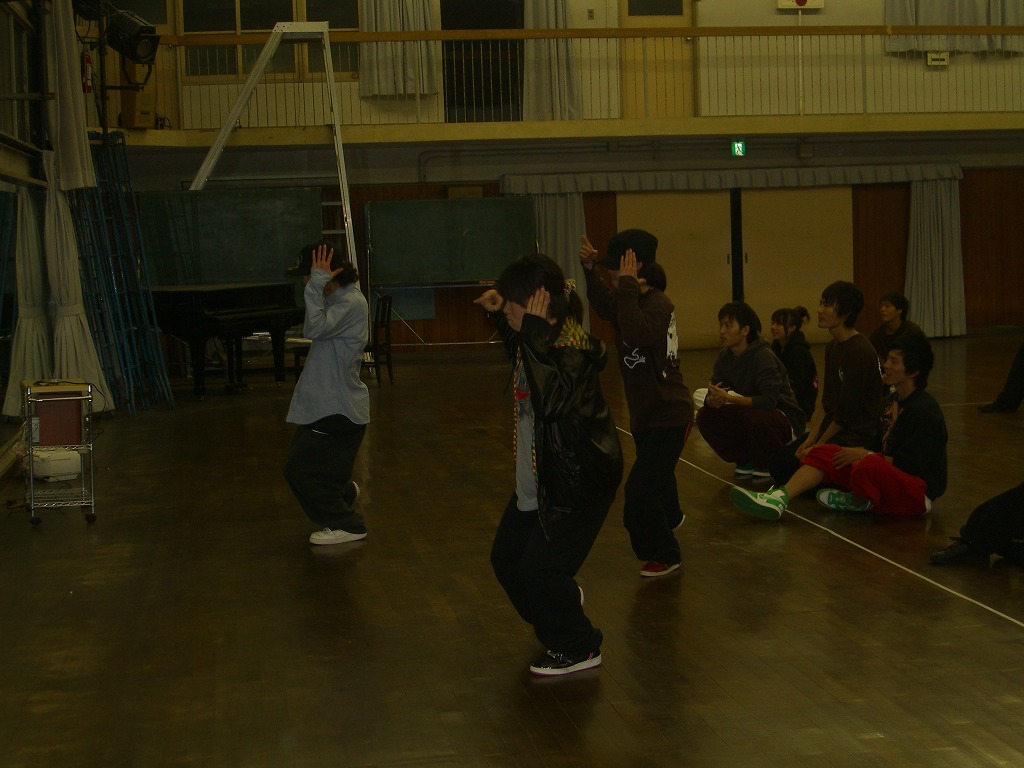 与えられた時間は30分程度。 ここで活躍したのは幾多のジャンルをこなす代表いわみと、 あきさんのPunking、はねっちのLockin'、たにけんのBreakin'など、 30分とは思えないShow Caseを作り上げました(過大評価ww)