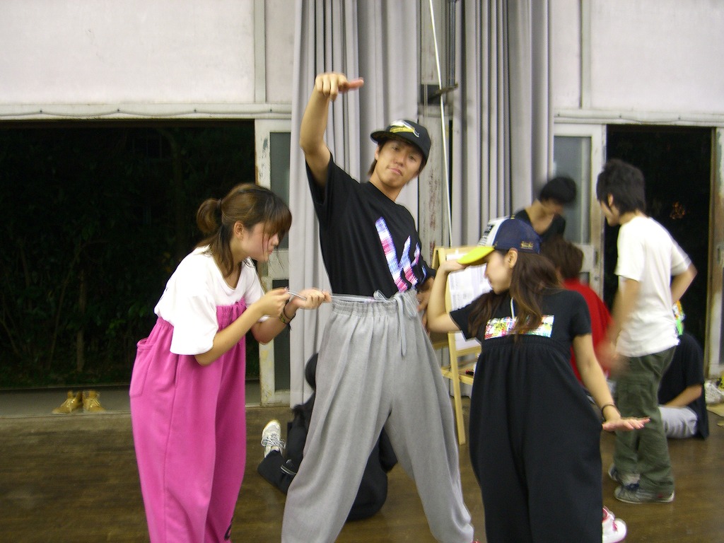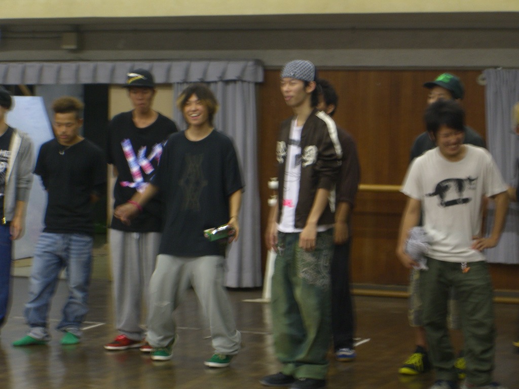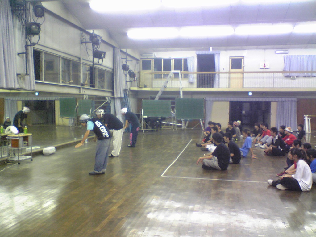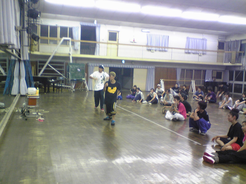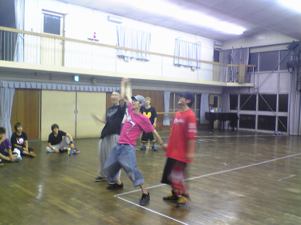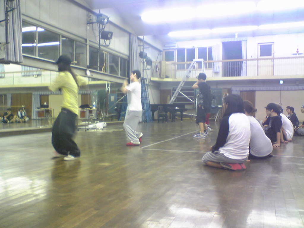 「夏合宿レポはまだ?」は禁句です。 9月中にできればいいペースなので、ちょっと待ってください(泣) 写真のほうは、4年ちゃあさん、2年えりなからいただきましたので、 しっかり使わせていただきます!ありがとうございました。 「もう秋ですね」と前回のタイトルで秋が来たね的雰囲気が漂っていますが、 そんなのは関係ない。 舞踊場はまだまだ熱気を帯びています☆ 「レッスン→4年さっきぃさんによるバトル」の流れが定着する今、 帰省していた方々も帰って来ていますので、 たくさんの人であふれています♪ さっそくレッスン、バトルの様子を見てみましょう。 左から 4年のみねさん、やまたくさん、3年のなおちかさん。 難しめの長い振りでした。 やはりこの3人が前で踊ると沸きますね♪ そしてバトルの様子・・・ ?この光景、どこかで見た気が・・・ 確か以前のバトルでもこの2人のバトルが見られましたよね☆ どうやら「バトル」ともなると舞踊場にいる人の目線もそちらに向くようです。 そのバトルを盛り上げるのが観客!! 大事なのはバトルを見てそれに応じた反応でもあるんですね。 時間のあるかたどんどんバトルを見学しに行きましょう♪ 参加者の方もモチベーションがあがりますからね。 多々撮れていないレッスンやバトルがあってすみません(汗) 全部は難しいですが、なるべくとるようにしますので、 ご了承くださいm(_ _)m 4年しげさんと2年はじくんによる振り見せ。 前段階の練習のフリが多く入っていたとはいえ、 やっぱり難しかったですね(汗) 決勝戦の「2年ゆーすけ VS 4年ロッキーさん」の前の、 エキシビジョンマッチ2on2!!! これはアツすぎる!! しどうさんのshort move→しげさん→しんさん →しどうさん→じゅんぺいさんという流れ。 会場は大盛り上がりでした★ 2年生ゆーすけ! もりあがりを見せた観客の方々にも拍手を。 両者すばらしいムーブでした。 と、まあまだまだ熱気のさめやらない舞踊場。 みなさんもぜひ、足を運んでみてくださいね☆ 次は早いことに学祭公演です! チームも動き出しますし、いろいろ事務的な伝達も増えてきます。 BBSやメーリスを通して確認するのも良いですが、 やはり直接来て確認するようにしてください。 それではこれから寒くなってきますが、 頑張ってアツくしてやりましょう!!!
