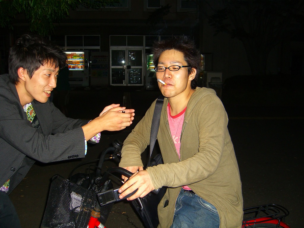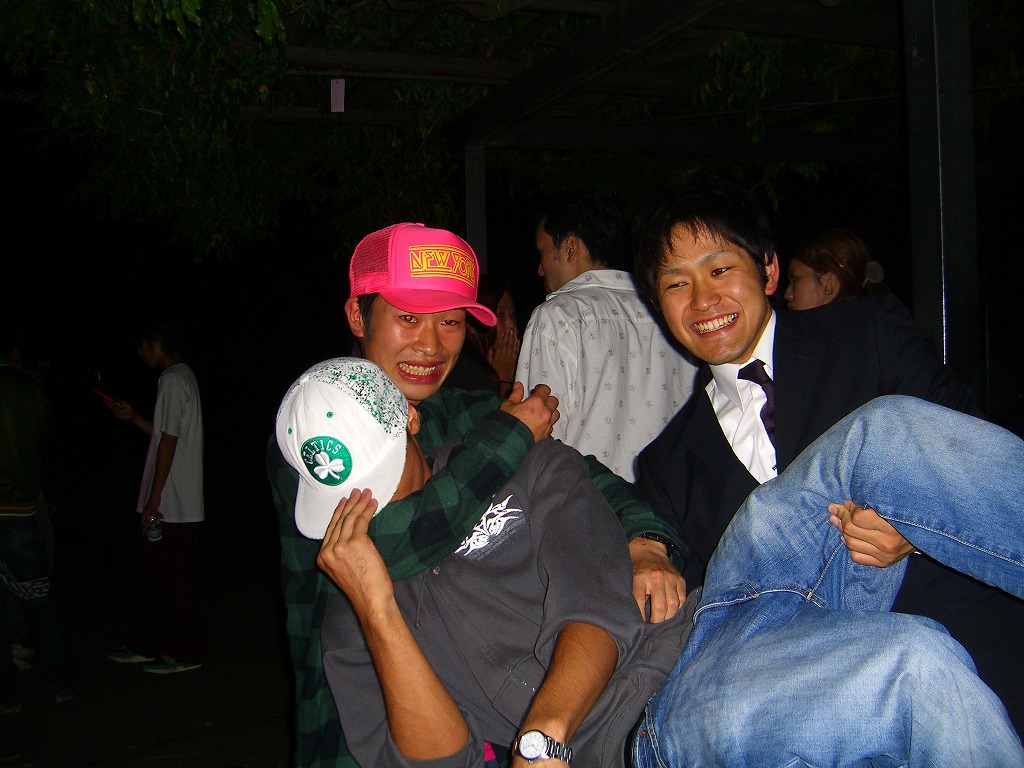 4年なりとさん 「外飲みはもうできないよね、とみんなが言うまでは外飲みができる」 と、言うことで、11月くらいまでは外飲みができるのではないでしょうか。 今回はあまり大人数でいなかったので、 「漢飲み」形式で、ビニールシートの上で輪になってすわりました。 みんな楽しそうにしてますね☆ イベント係はお疲れ様でした! また企画してほしいものですが、まずは学祭ですね♪ 最初は4年生さんたちによるYes,Noアンケート。 4年みねさん「今日、ガンツ読んできた人!」 に、挙手したのは4年しげさん、2年はじ(笑) みんなで丸く座れば温かいものです(温) 1年生もたくさん来てくれて面白かったですね★ 自然と大きな輪も崩れて、いつもどおりの外飲み形式に。 でも楽しさはいつもと同じで、かわりませんね☆ 1年生に飲まされる姿はもはや見慣れた光景。 貫禄さえ漂うその姿はアフビの大御所か。 これからが期待♪ はじ「俺かわいくね?」 はいはい。 2年生が続いてしまって申し訳なス。 しゅんぞー、えりな。特別出演、はねっちの手。 しゅんぞー「俺かわいくね?」 もはやはじと同じだな(笑) 4年のしげさんとロッキーさんと2年すちだ。 このどぐされようは半端ないですね(汗) ロッキーさんスーツ(笑) と言うロッキーさん(笑) ちなみにこの日は満月でしたっ♪ これはしげさんか?? 撮影者:4年なおみさん 「おにがわら」に続く変顔に唖然(笑) 今度からは1女もこういうのしていきましょう(笑) ノーコメント。 なんの会議だろう・・・ ずーっと話してました☆ これぞ外飲みっ!! しげさんは気持ちよさそうに寝っころがってます(笑) たっくん「ウホッ」 しんさんしげさん気をつけてー!! こうみるとしんさんが「ささっ、どうぞ!」 と、言ってるみたいですね(笑) いやー最後には雨が降ってきましたが、5時頃まで楽しめましたね☆ 1年生をもっと撮ってあげたいので、出しゃばってください(汗) 恐れ多いなんて思わなくてOKです☆ なんだかんだでデジカメを家から引っ張りだしてきたので、 今後はもっとたくさん撮りたいと思います♪ それではっ PR 更新遅れてしまって申し訳ありません(汗)