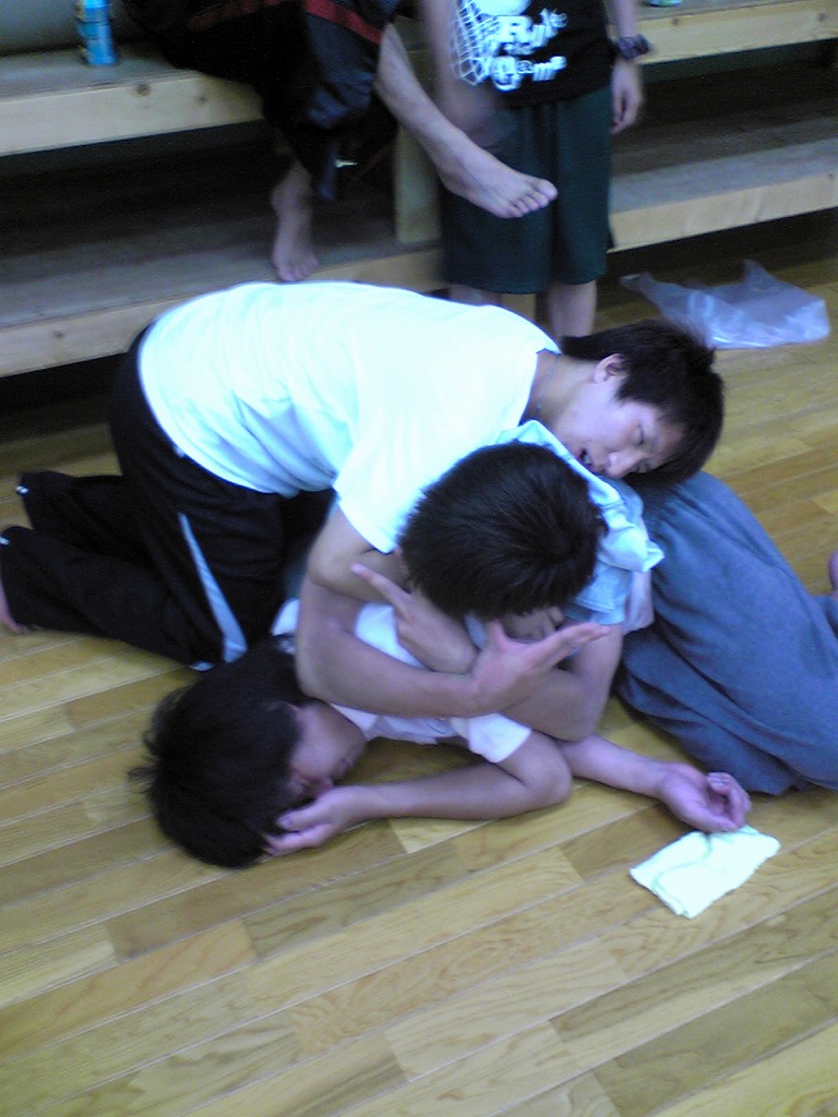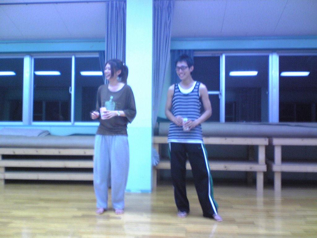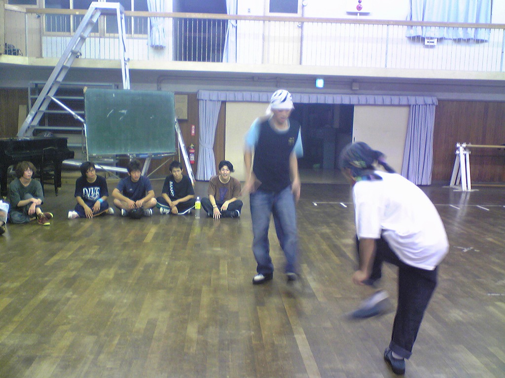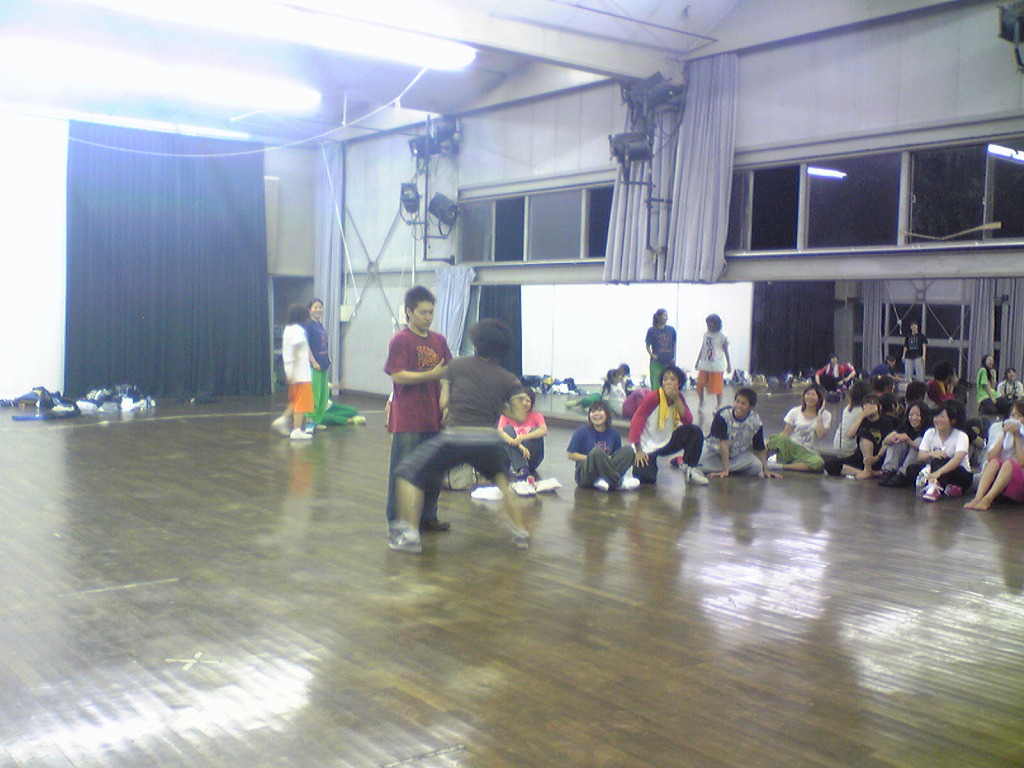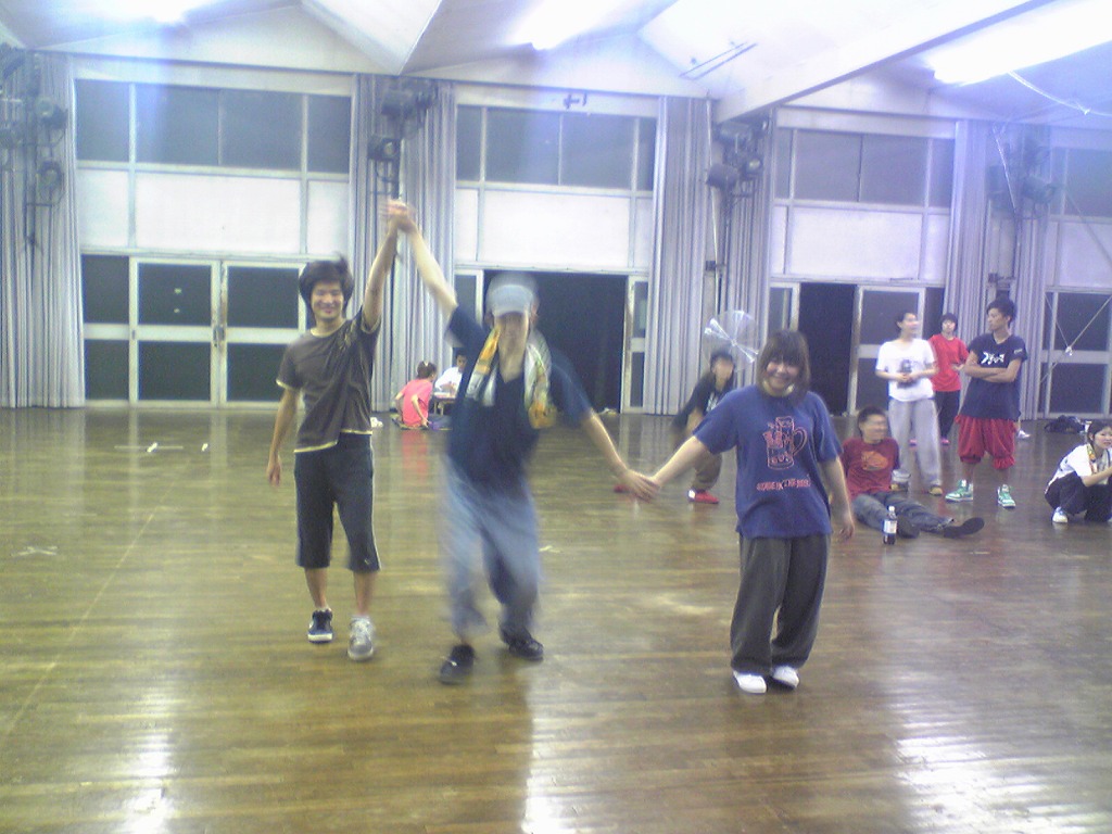 暑い日差しが差す中、やってきました。夏のレッスン!! 多くのアフビたちが帰省する中、こうして舞踊場日記を書くことで、 「うわー舞踊場マジいきてぇ!」 と思わせるのが「ほーむぺーじがかり」の魂胆です★ 未だにデジカメを買うことのできないやつもいる中、 着々とレポートも出来上がってきています。わーい ♪ 「急がなくていいよっ」と労ってくださる先輩方に涙・・・ ホントに頑張らせていただきます! ではでは早速ですがレッスンの模様を見てみますか。 なんか手をぐるぐる回してました。 Jazzでしたが、男女ともに楽しめましたね☆ 1年生もたくさん参加しました。 腕を思いっきり回してました。 楽しそうでなによりです。 レッスンのあとはー・・・ 4年さっきぃさんによる「TheB@ttle」がスタート!! 今回、HP係が撮ったのは「J-Pop side」。 誰もが知る「アツい曲」がかかる中、間違いないムーヴが巻き起こる! この日、舞踊場に新たな風を起こしたのは、 レッスン指導をしてくださった3年ゆっけさん! Jazzバトルが普段は無い中、 壮大な表現力で舞踊場を沸かせました! ← VS 3年まりあさん(アフビの女神) これは決勝ですね。 ゆっけさんの勝利! すばらしいバトルでした。 先輩たち、お疲れ様でした。 と、ここで4年「まさーん」現る?! J-Popバトルと言えばこの人しかいませんよね☆ 深いお辞儀とともにバトルスタート!! お互いから、すばらしいムーヴがでました。 舞踊場もガン沸き(笑) 審査も悩んだ末・・・ ゆっけさんの勝利★ J-Popバトルということで、さっきぃさんから、 ポップコーンが送られました(笑) まぁさんの次回のムーブに期待しましょう! 途中から来たのに、すぐさまバトルに出ていただき、 ありがとうございました ♪ 「ふう~。 今日もいい汗かいたなぁ・・・」 とけやき体育館でバスケをした時の3年にんにんさん。 2年かめかめのうまさに脱帽! アフビはホントにダンスサークルなのか?! 疑わしいですね・・・ バレーも楽しかったですね☆ 下手したらチーム作れちゃいますよ(汗) と、唐突に以前の写真を使うことで、 ふぃーどばっく的要素を絡ませるHP係です☆ 4年しどうさんだぁ! これは夏公演最終日でしたね★ めちゃめちゃ面白かったです! 4年生のDJさっきぃさん。 これは少人数で「ふろきん」に行ったときでしたね。 ホントお疲れ様です☆ 夏合宿で寝まくるいわみは、 もはや風格さえ漂わせていました☆ 4年生のしょーPさん、しげさん、みねさん、 3年生のさおりさん、2年のはねっち、 1年生のじゅんじー・・・ と、過去に浸っていても仕方ありませんね(汗) みなさん、夏を満喫したご様子で。 HP係ももっともっとアフビに関わっていきますので、 どうかよろしくお願いします。 夏公演レポートもほぼ完成です。 夏合宿レポートもがんばりまする! 今後はレッスンが目白押しです! 1年生だけでなく、たくさんの方々に足を運んでもらえると嬉しいです ♪ 次の学祭に向けて、ひとりひとり成長できると良いですね☆ みなさんこんにちは。